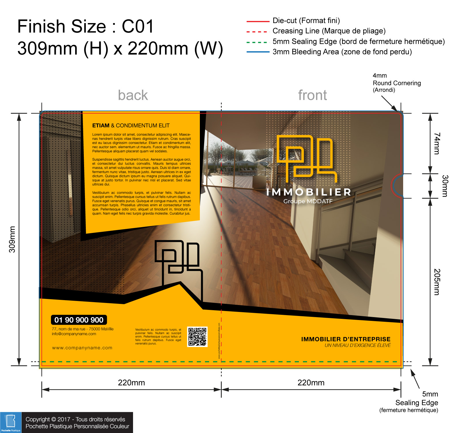 template IMMO 04 - Pochette ou chemise plastique couleur personnalisée pour immobilier, BTP