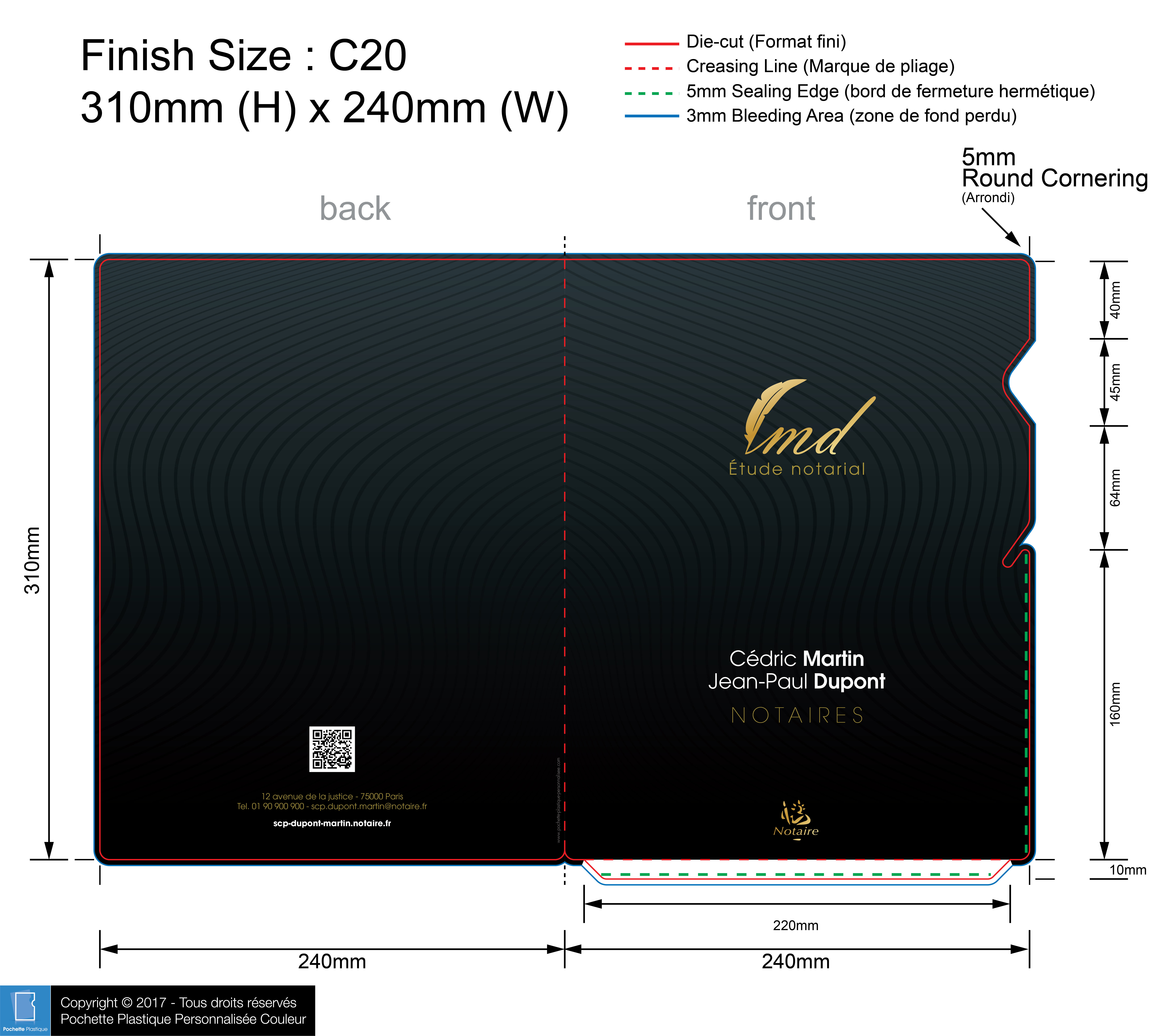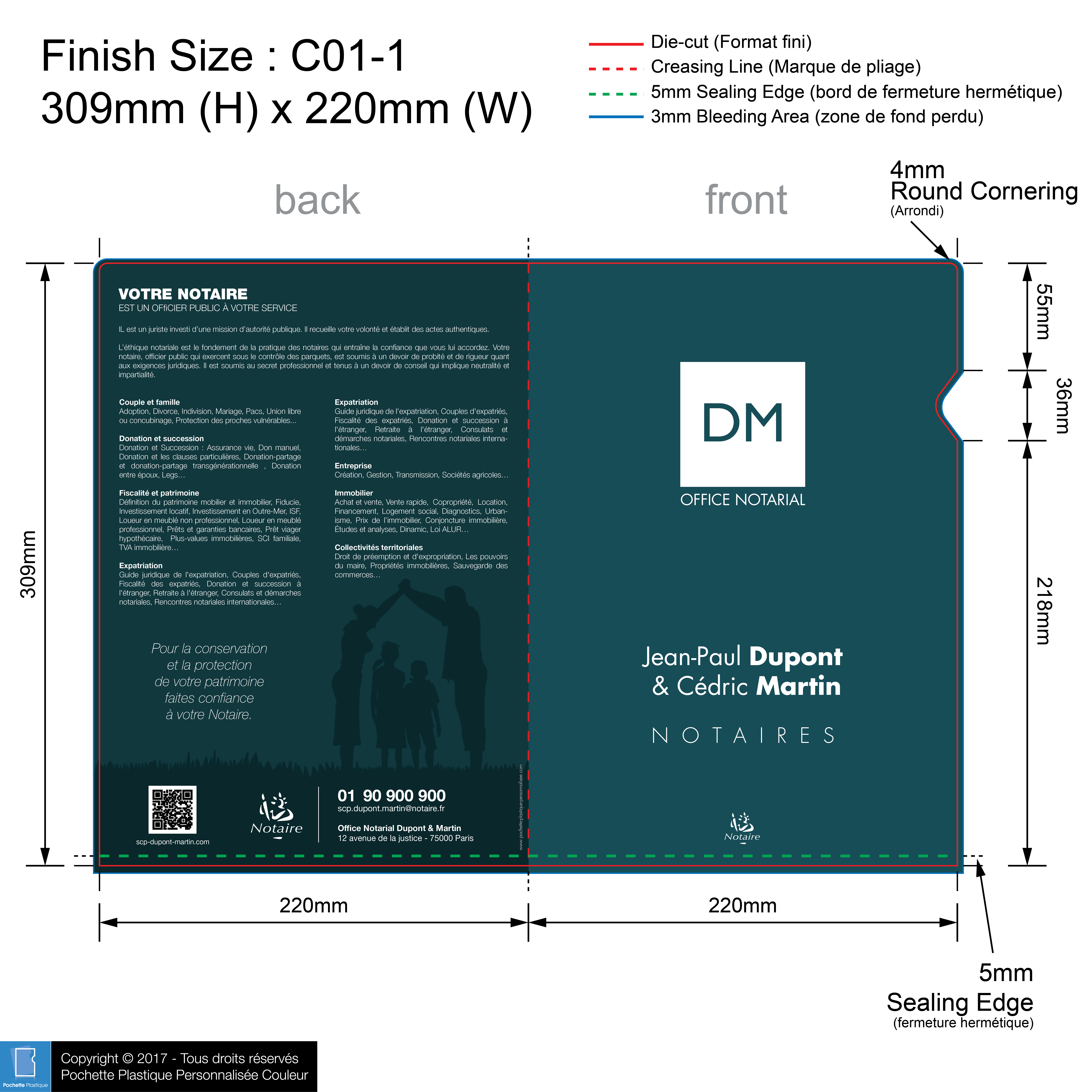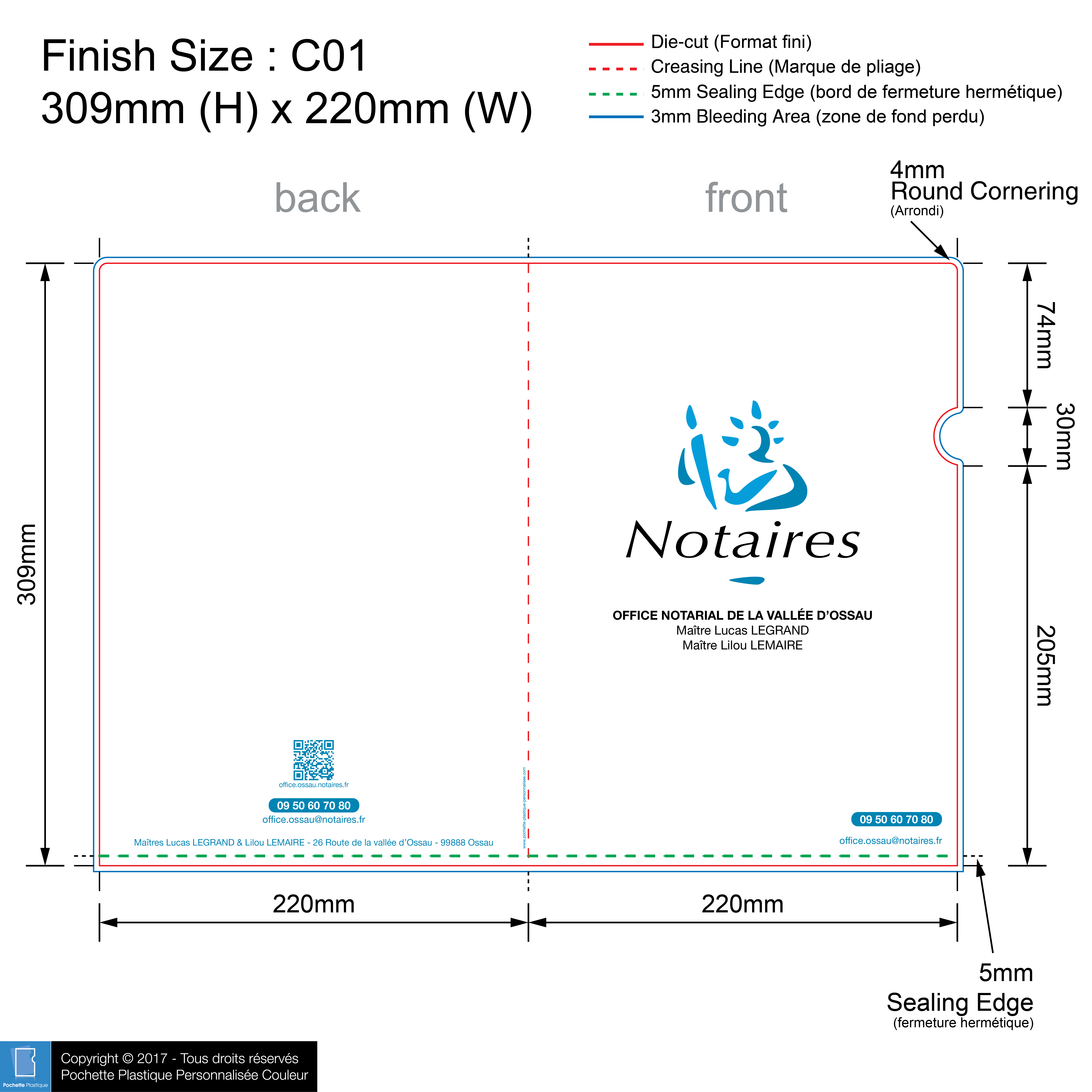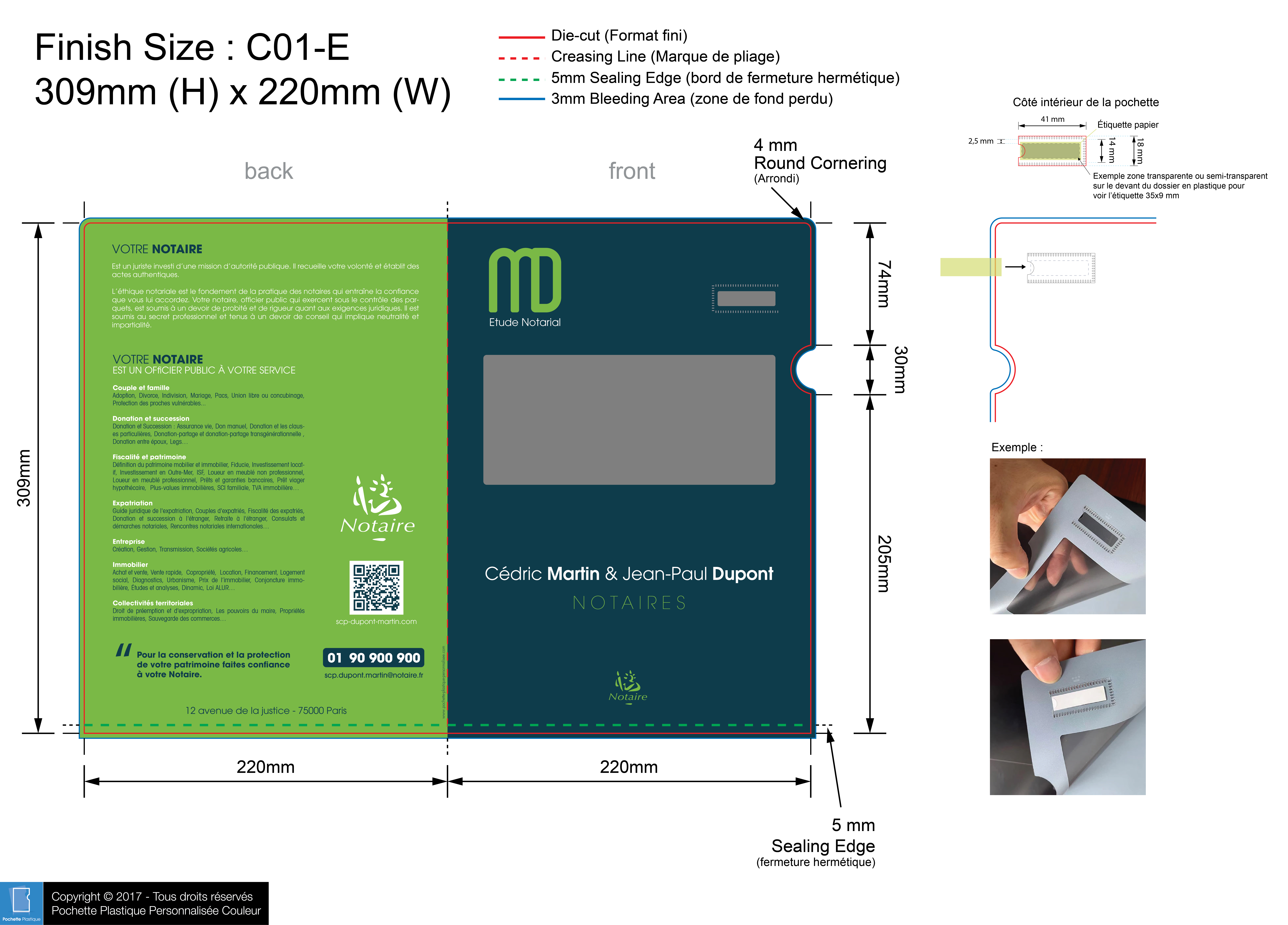 template NOTAIRE 04 C01-1 - Pochette plastique couleur personnalisée