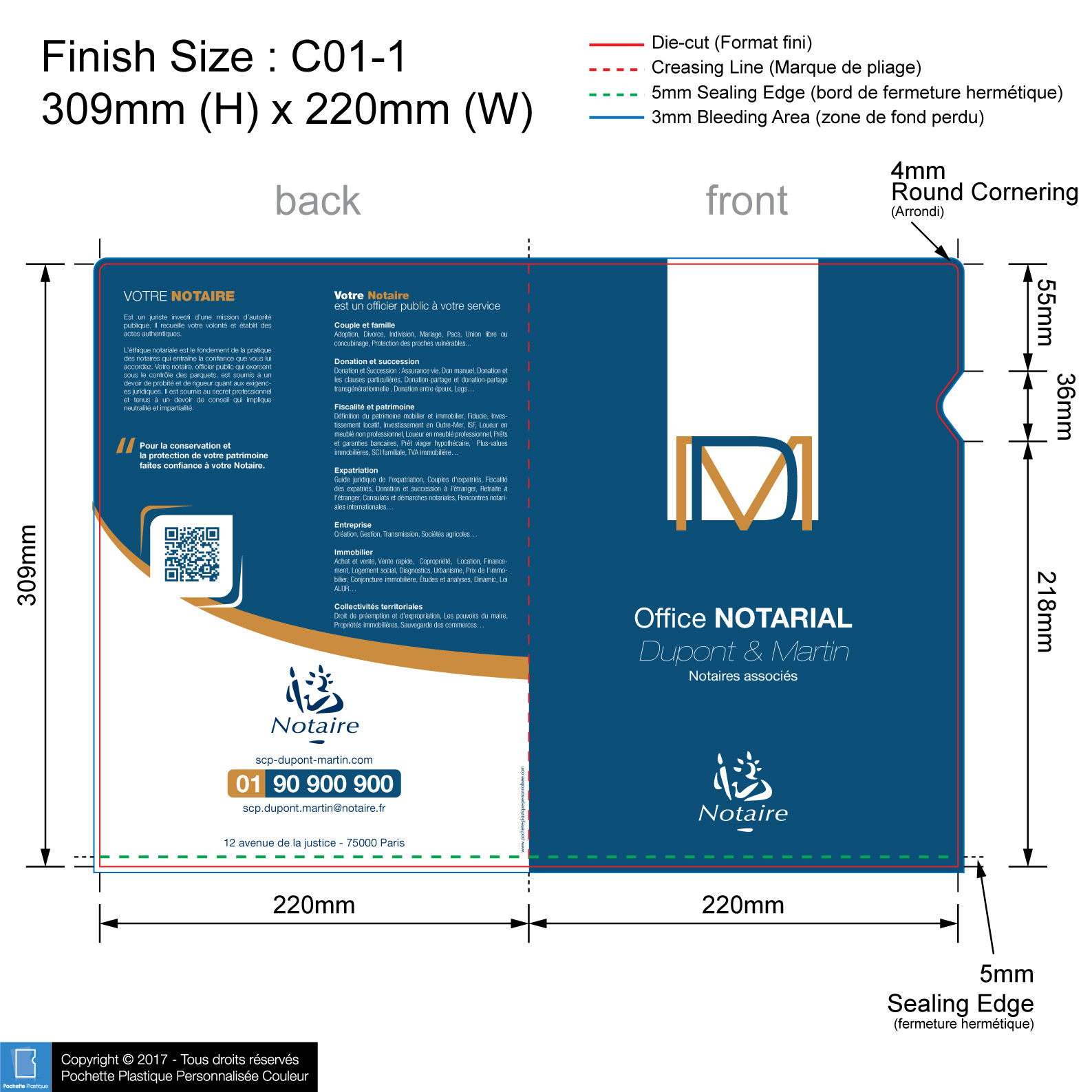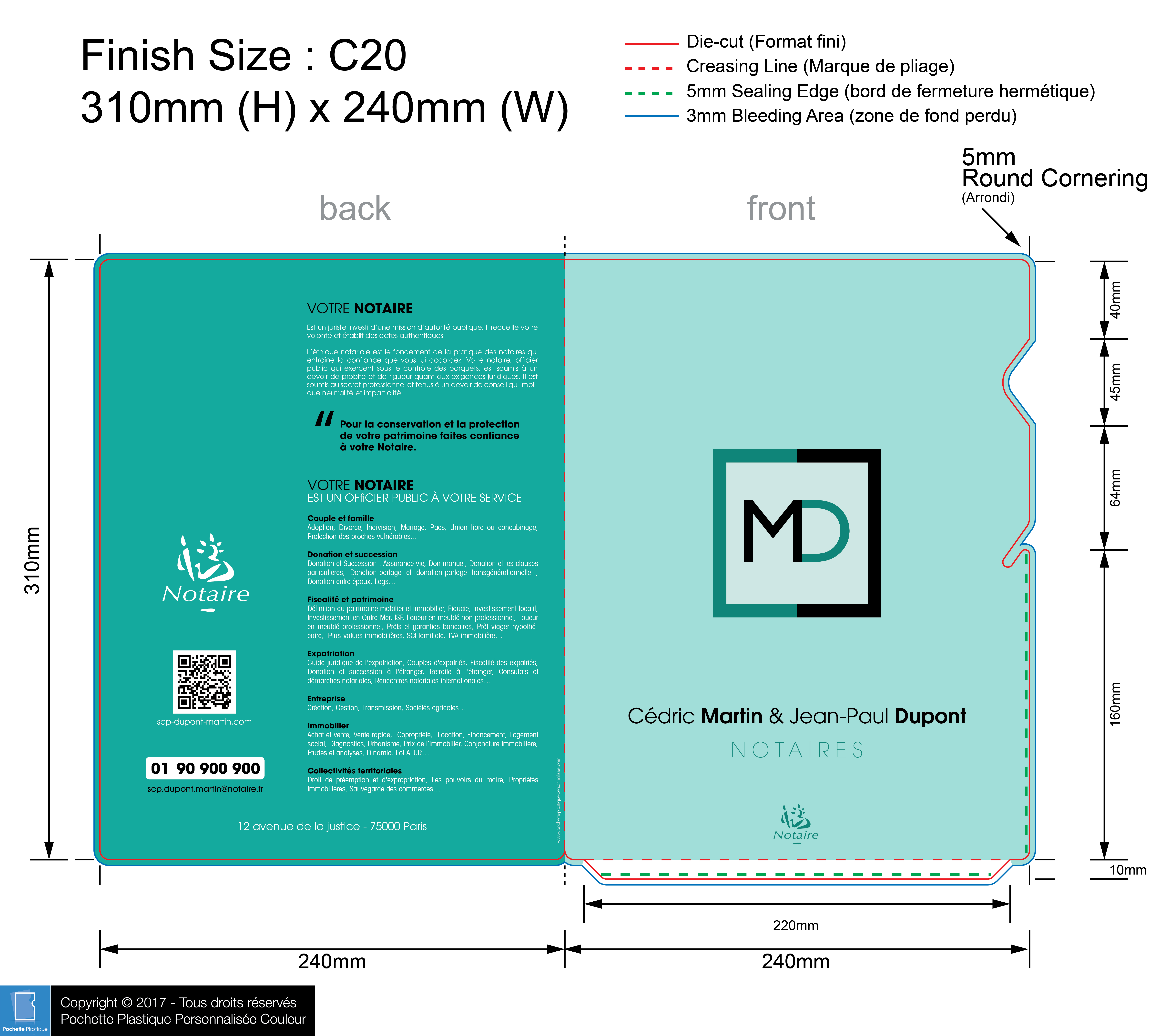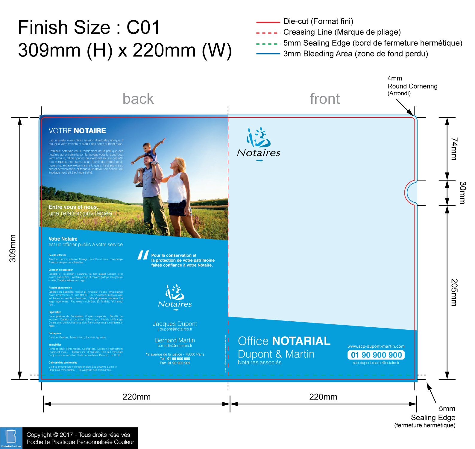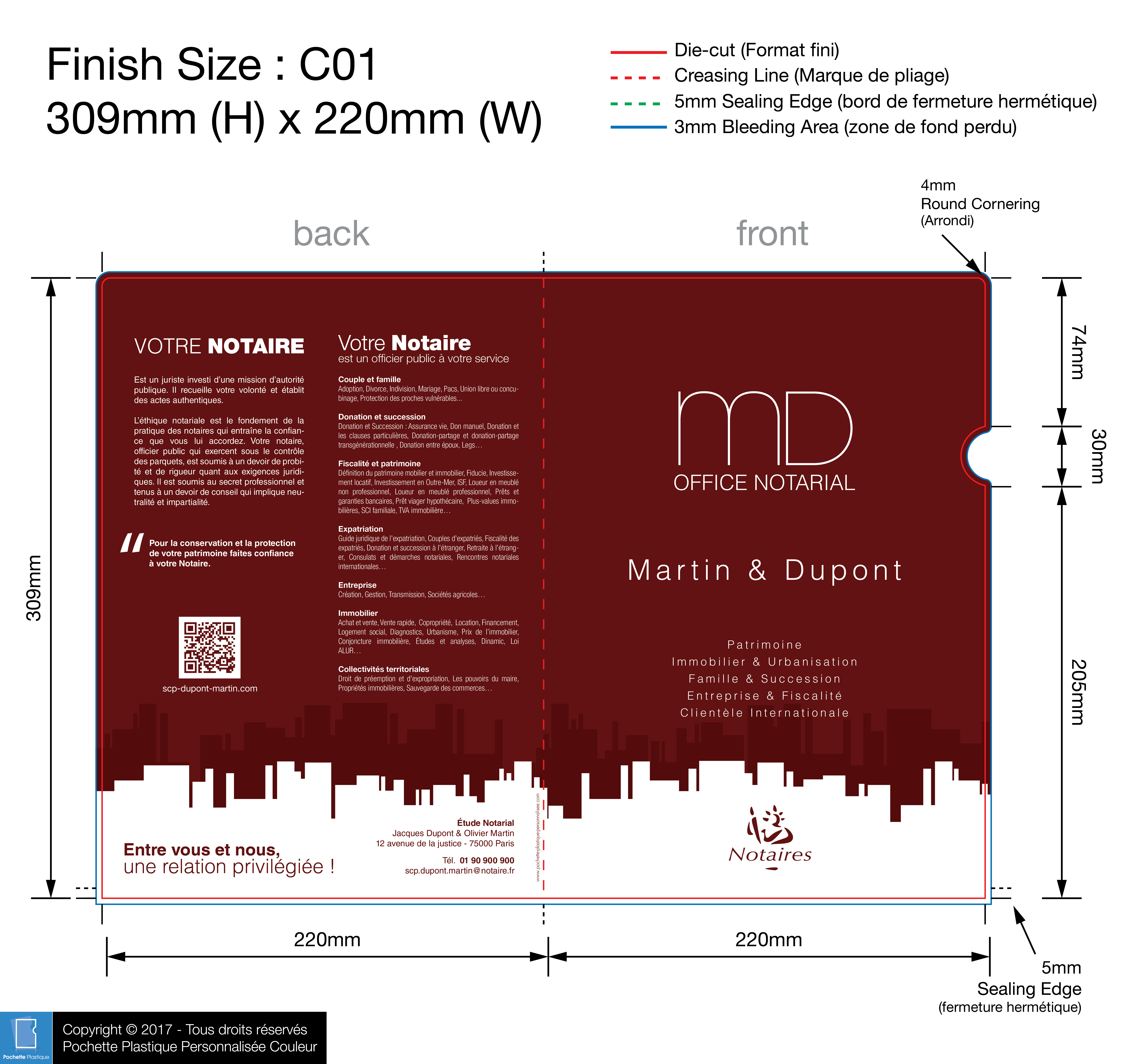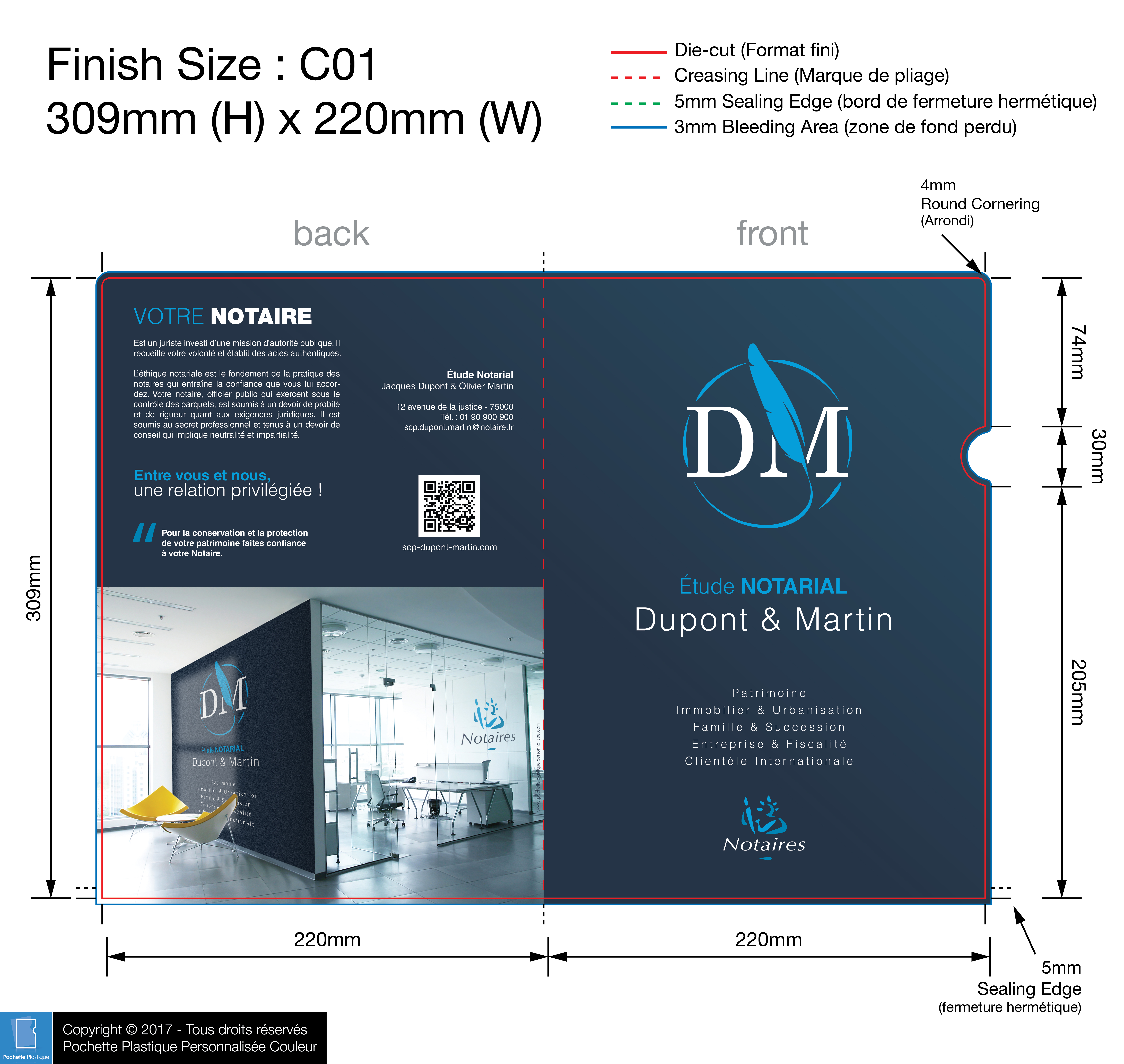 template NOTAIRE 04 C01-1 - Pochette plastique couleur personnalisée
