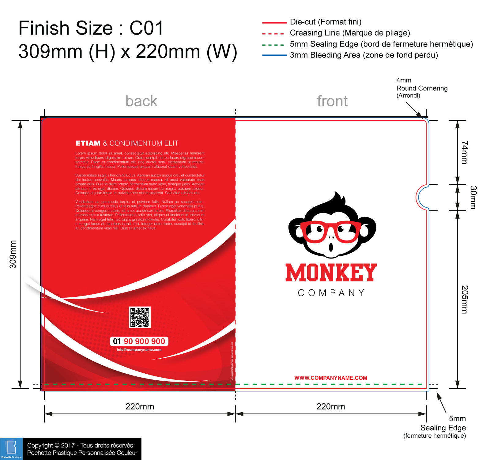 template ROUGE 01 - Pochette plastique couleur personnalisée