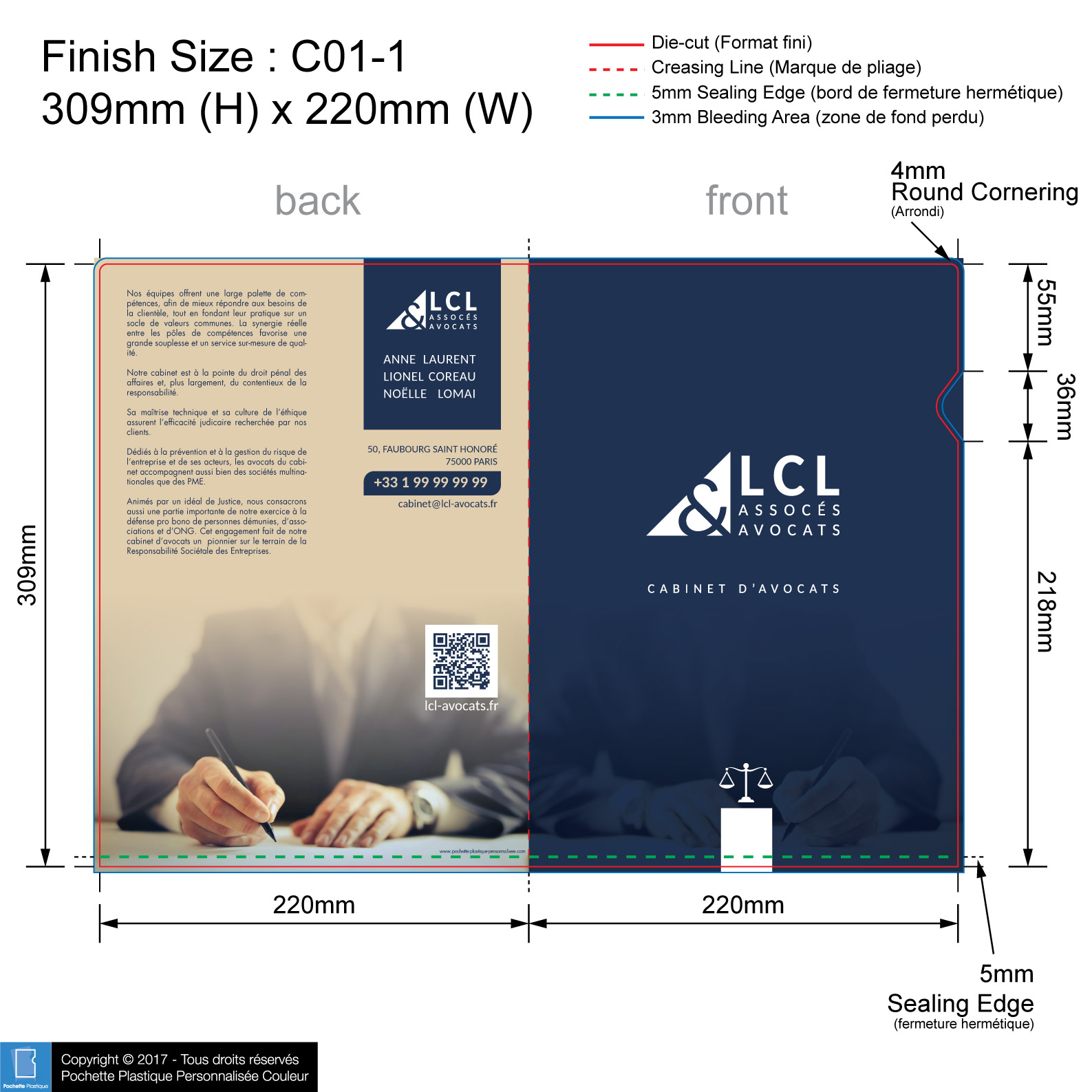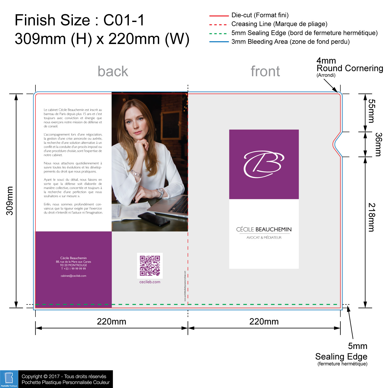 template NOTAIRE 04 C01-1 - Pochette plastique couleur personnalisée