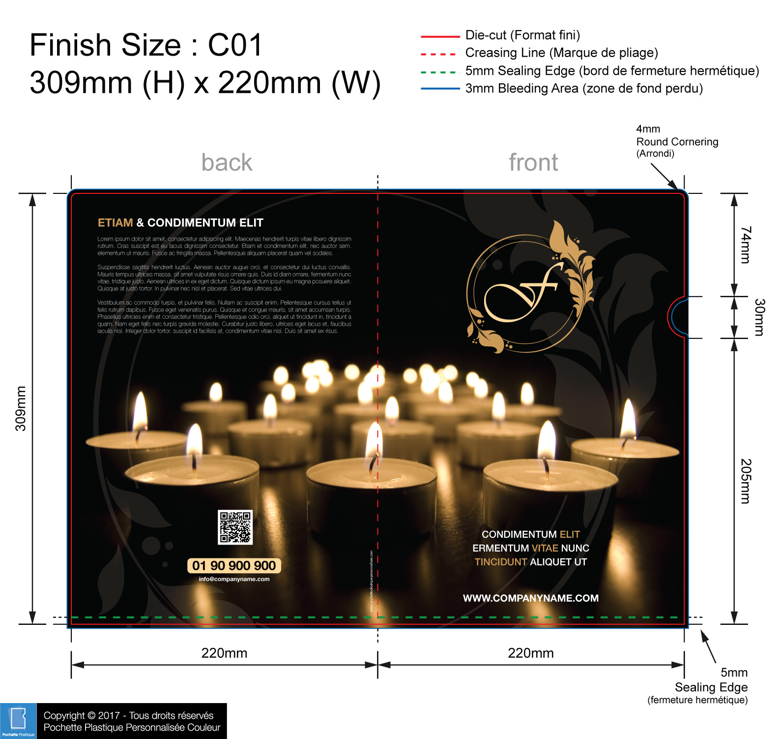 template FUNERAIRE 02 - Pochette plastique couleur personnalisée