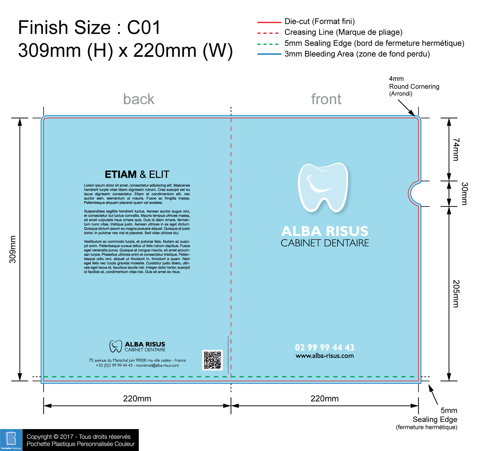 DENT 01 - Pochette Plastique Couleur personnalisée Dentiste et Cabinet Dentaire
