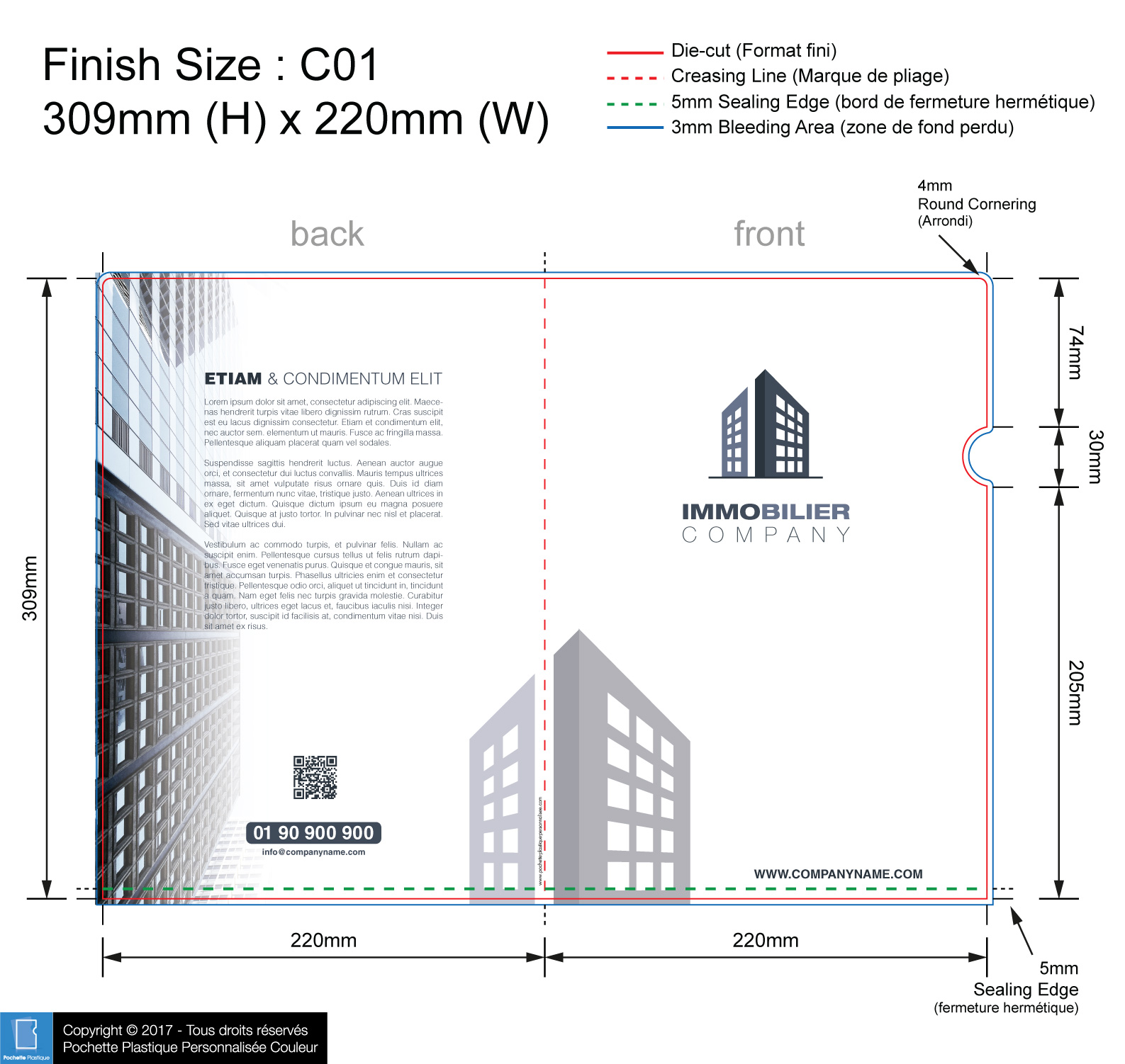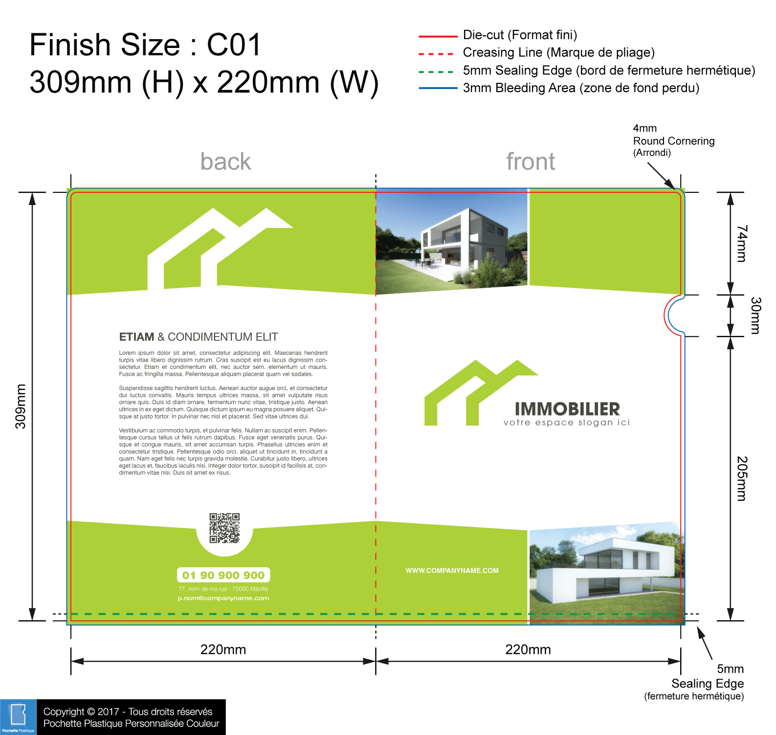 template IMMO 04 - Pochette ou chemise plastique couleur personnalisée pour immobilier, BTP